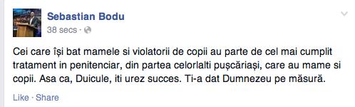 Bodu, mesaj ȘOCANT pentru Duicu. \"Violatorii de copii și bătăușii de mame…\"
