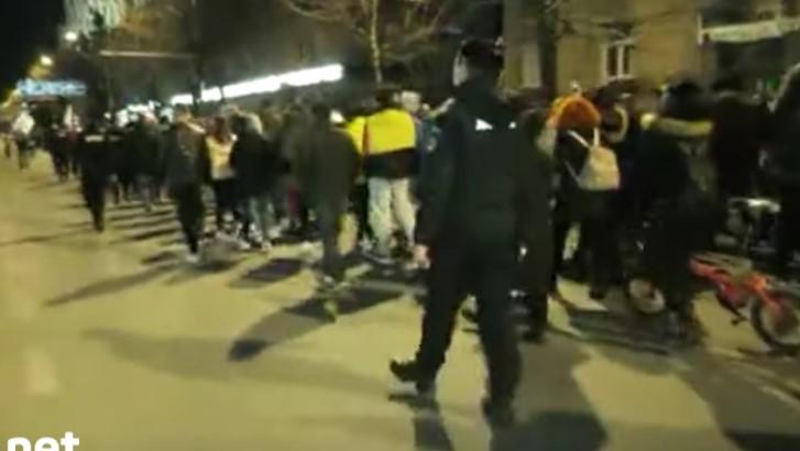 Bolnav COVID, care respiră cu masca de oxigen, privește protestele anti-restricții din Brașov- filmarea momentului
