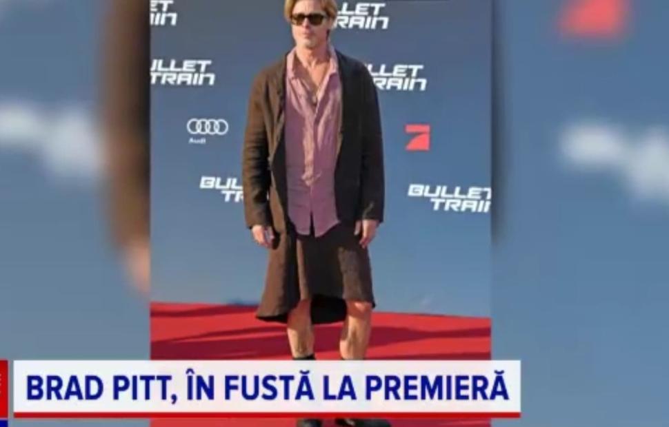 Brad Pitt, apariție neașteptată. S-a îmbrăcat în fustă, asortată cu o cămașă roz - Foto în articol