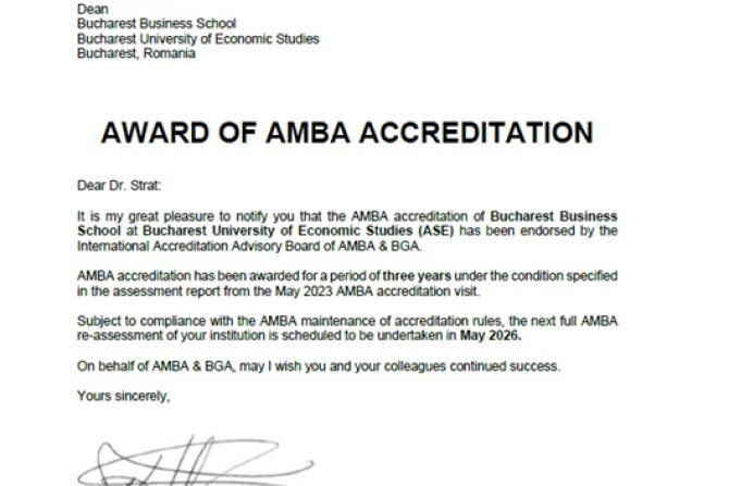 Bucharest Business School, școala de afaceri a ASE, obține acreditarea AMBA - devenind astfel prima și singura școală de afaceri din România din rețeaua AMBA