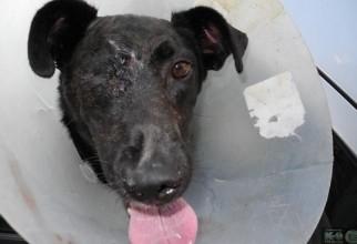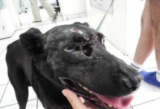 Câine împușcat în cap, operat pe banii străinilor. Imagini șocante