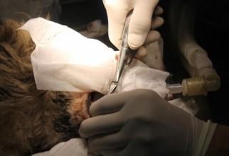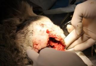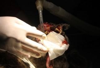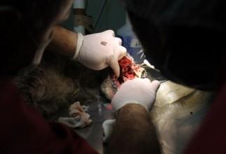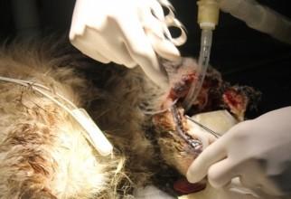 VIDEO EMOȚIONANT - Cățelușa mutilată a fost operată cu succes. Vezi momentul tensionat din timpul intervenției
