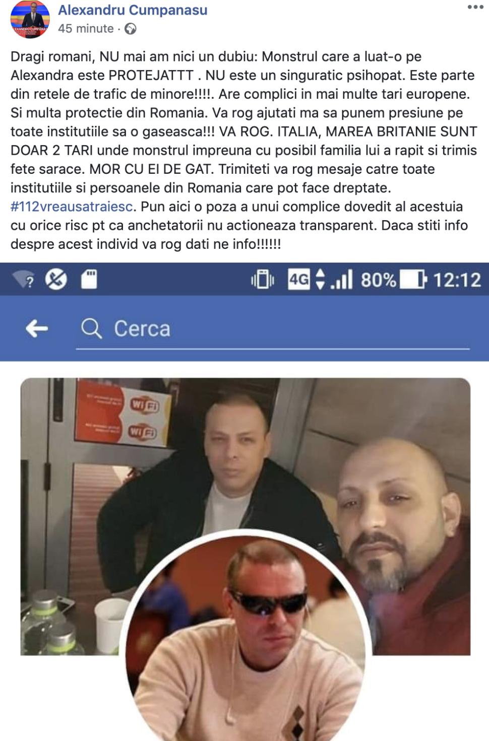 Caz Caracal. Alexandru Cumpănașu, noi acuzații: ”Mor cu ei de gât”. Fotografia publicată de unchiul Alexandrei