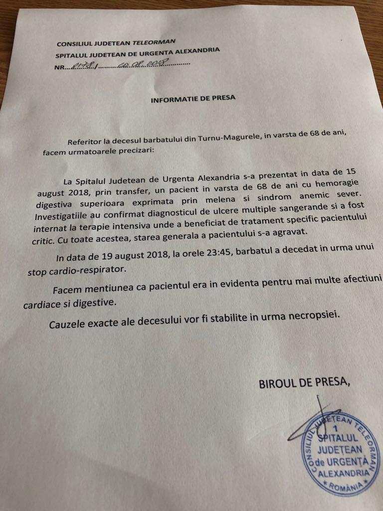 Protestatar mort. Reprezentanții Spitalului din Alexandria, precizări