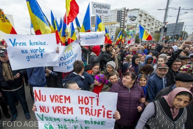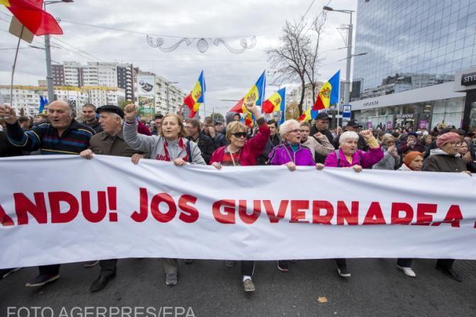 FOTO: Ciocniri între forțele de ordine și protestatari, la Chișinău. Mii de moldoveni, în stradă