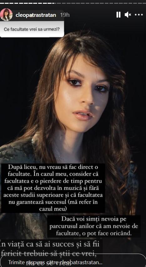 Cleopatra Stratan: Nu vreau să fac direct o facultate, e o pierdere de timp