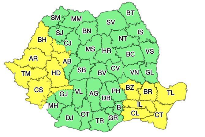 Cod Galben de averse, descărcări electrice, intensificări ale vântului, vijelii și grindină. A fost emisă alertă pentru București