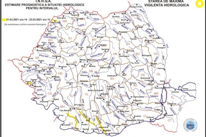 Cod galben de inundații pe râurile din sudul și SV-ul României