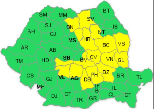 Cod Galben de ploi abundente şi furtuni. Vezi harta zonelor afectate