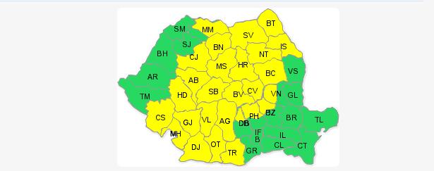 COD GALBEN de PLOI și VIJELII în 27 de județe