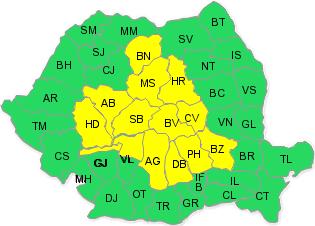 COD GALBEN DE PLOI în 14 județe. Harta zonelor afectate