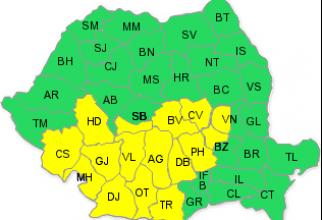 Cod galben de ploi în 16 judeţe din ţară până marți seara