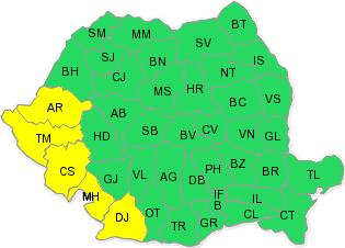 Cod galben de ploi, prelungit în cinci judeţe din sud-vestul țării