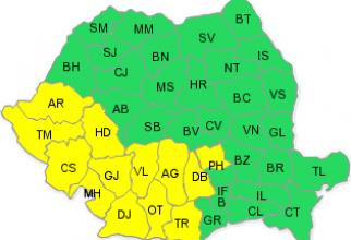 Cod galben de ploi și vijelii în 17 județe. Vezi zonele afectate