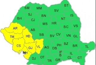 Cod galben de ploi torenţiale şi grindină în şapte judeţe