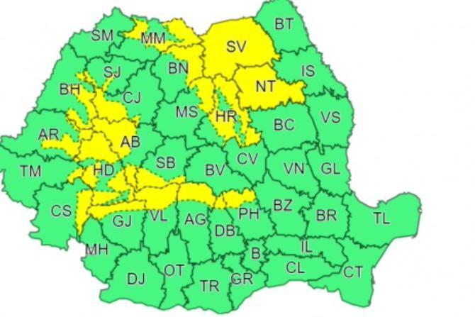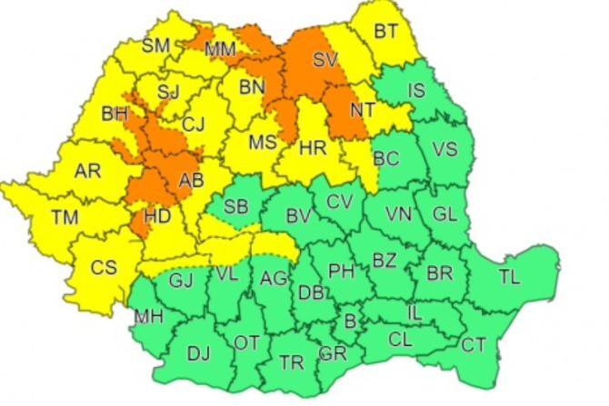 Cod Galben și Cod Portocaliu de NINSORI abundente. Harta ANM: județele vizate