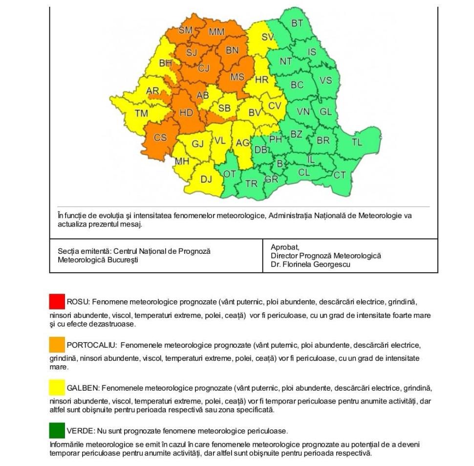 Cod Galben și Cod Portocaliu de vreme rea. Harta cu zonele vizate. Prognoză meteo specială pentru București - Foto în articol