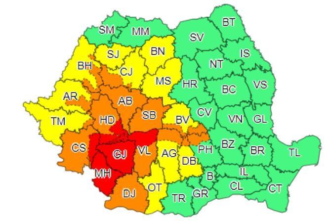 Cod roșu de precipitații și viituri în sud-vestul țării. 5 județe vor fi afectate