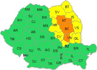 Codul galben și Codul portocaliu de vreme extremă, prelungit de ANM