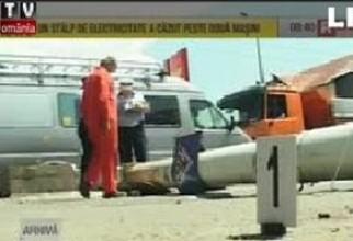 Comarnic: Un stâlp de electricitate a căzut peste două mașini