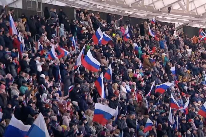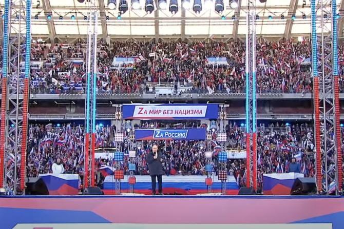 Rusia sărbătorește moartea din Ucraina. 200.000 de oameni îl aplaudă pe Putin care vorbește despre creștinism în ”operațiunea militară din Donbas” VIDEO