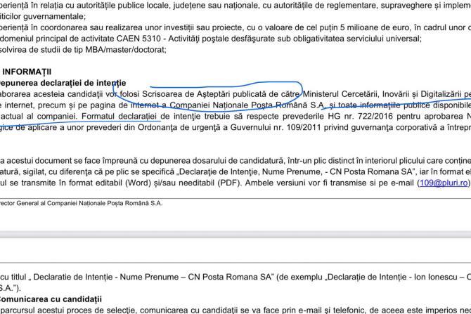 Controversă la concursul pentru director la Poșta Română: Lipsește declarația de intenție. Iar ce apare în scrisoarea de așteptări... e de noaptea minții - documente