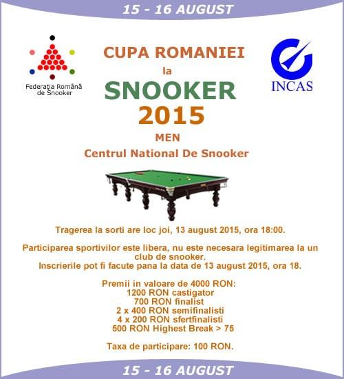 Cupa României la SNOOKER 2015. Finala duminică, 16 august