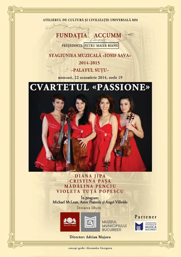 Cvartetul “Passione”, recital în cadrul Stagiunii muzicale \"Iosif Sava\" la Palatul Șuțu