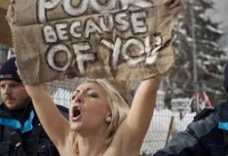 Davos: Protest cu sânii goi, împotriva ”gangsterilor”