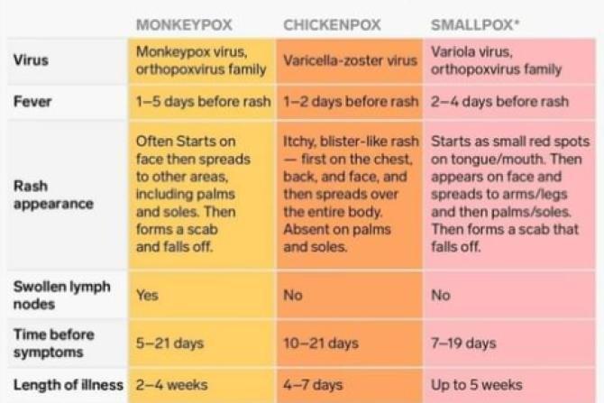 Diferențele dintre variola maimuței, varicelă și variola clasică