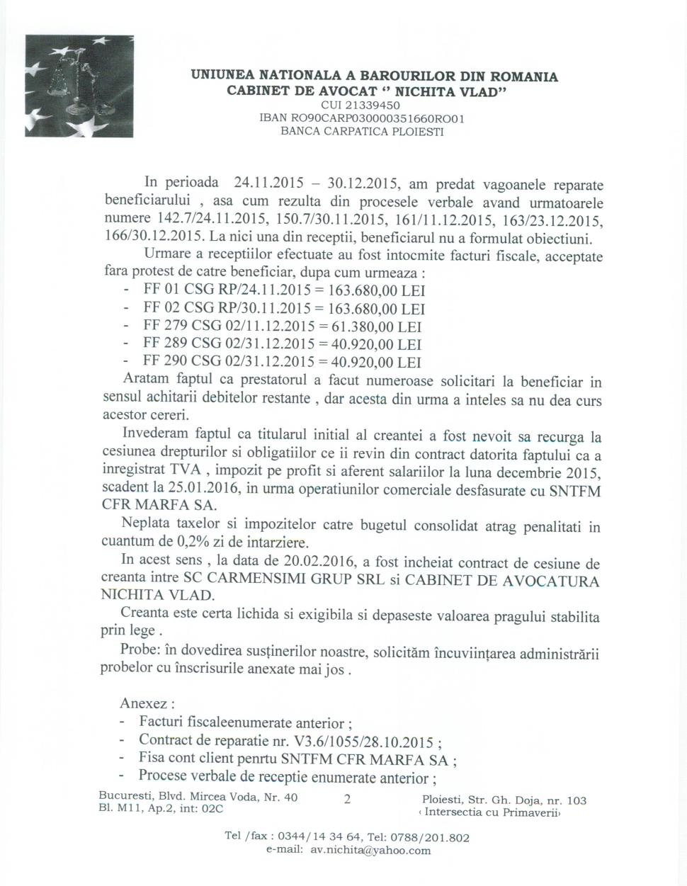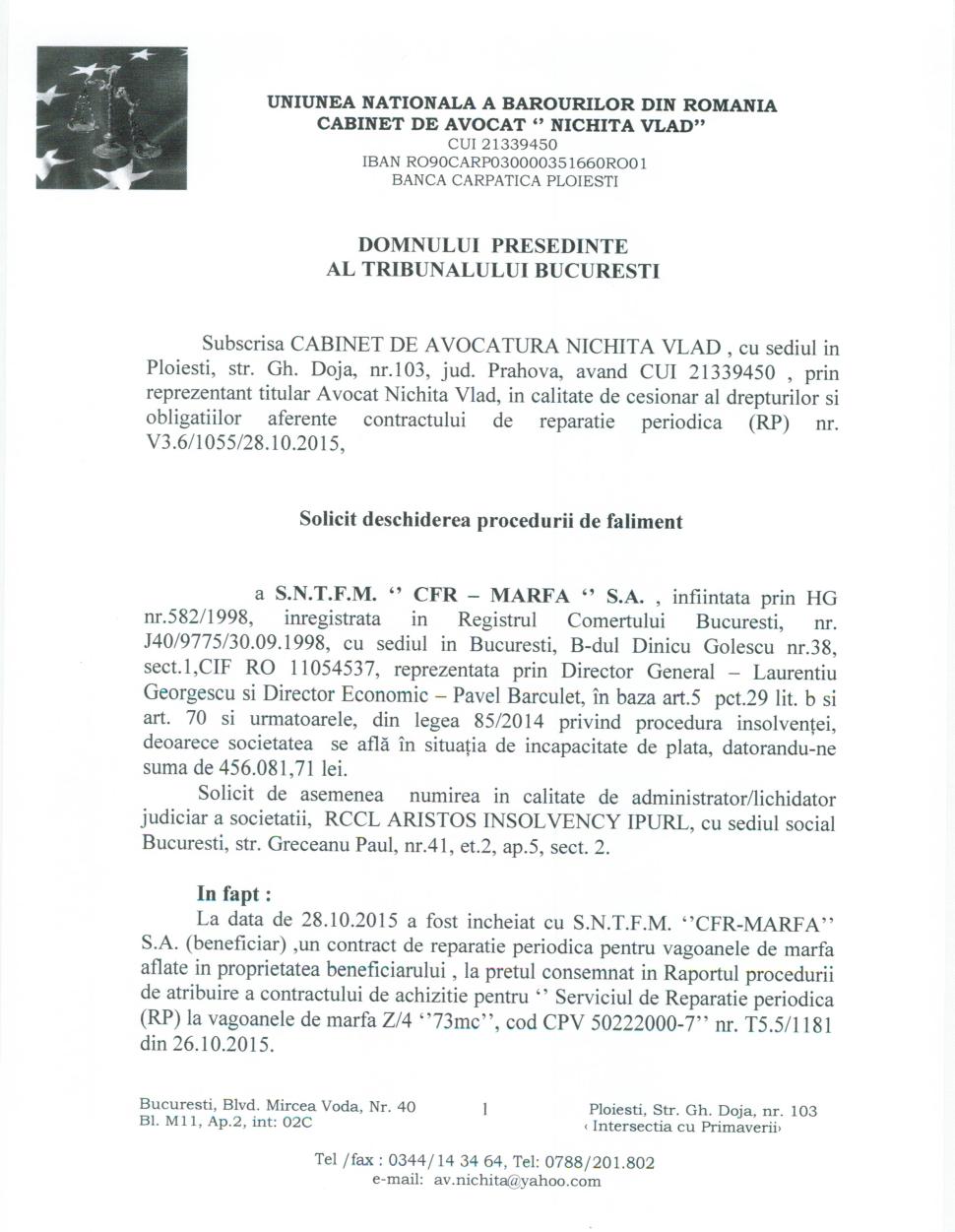 DOCUMENT. Se cere falimentul CFR Marfă