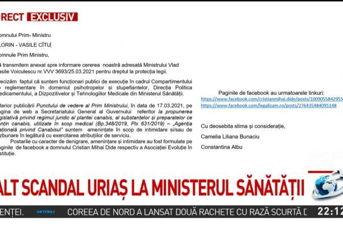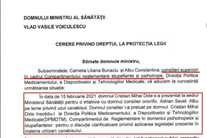 Doi consilieri din Ministerul Sănătății cer PROTECȚIE, după o discuție cu protestatarul Dide despre cannabis - Document