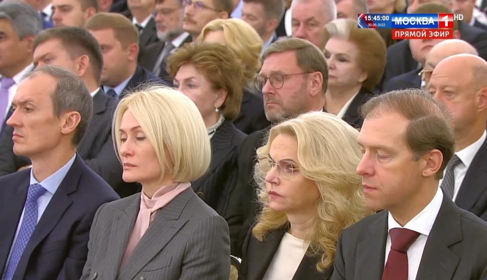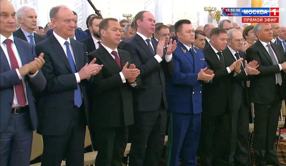 Dovada că elita Rusiei stătea ca la înmormântare la ceremonia lui Putin, în care a semnat anexarea regiunilor din Ucraina - Galerie Foto