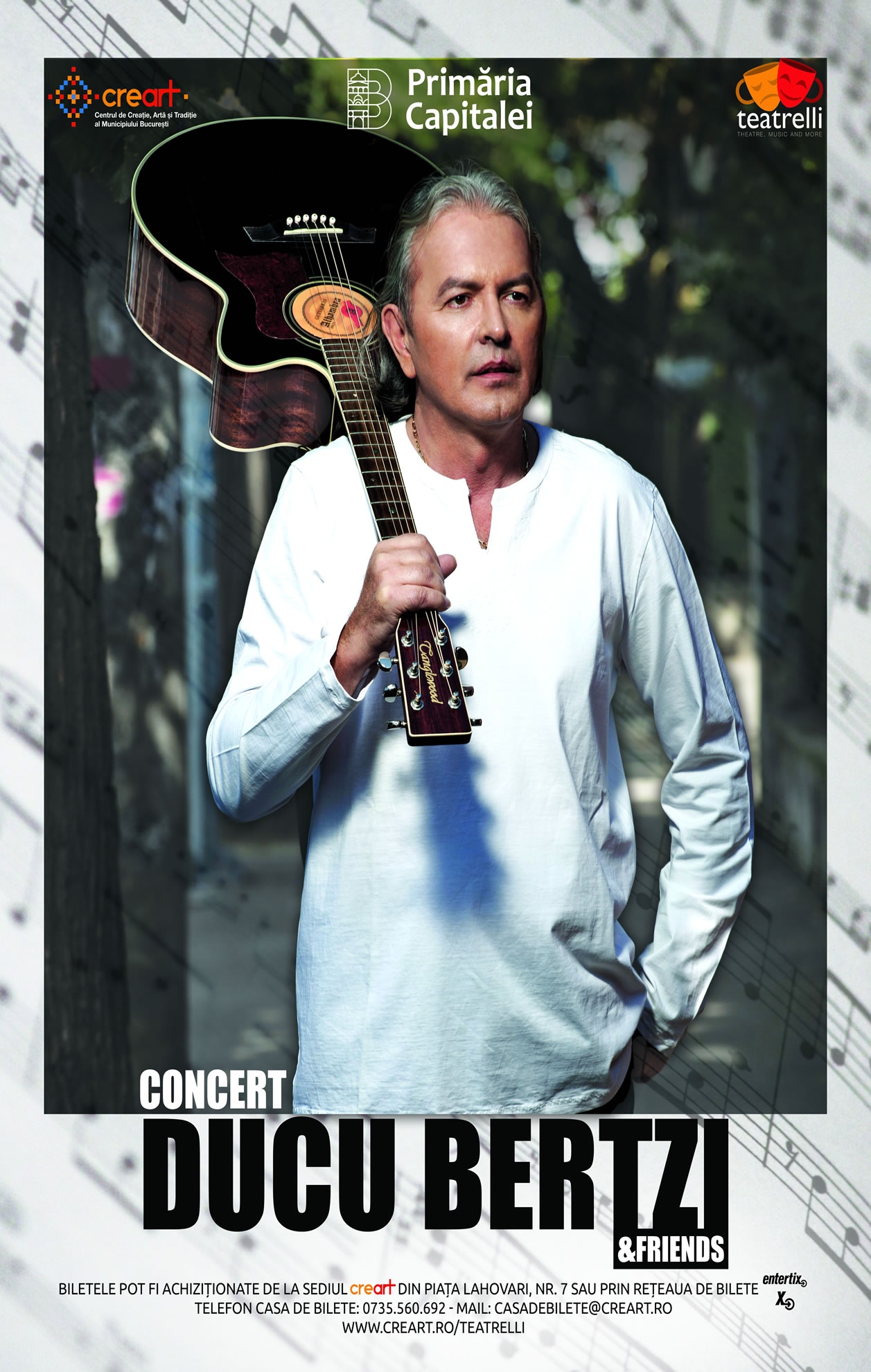 Concertul va începe de la ora 19.00 și se va desfășura la Teatrelli (Creart), Piața Alexandru Lahovari nr. 7. Ducu Bertzi va fi acompaniat de Irina Furdui - vioară, Constantin Neculae - chitară și voce și Tavi Iacob - keyboard.