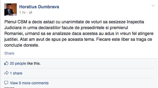 Dumbravă (CSM), după atacul lui Băsescu: \"Fiecare este liber să tragă ce concluzie doreşte\"