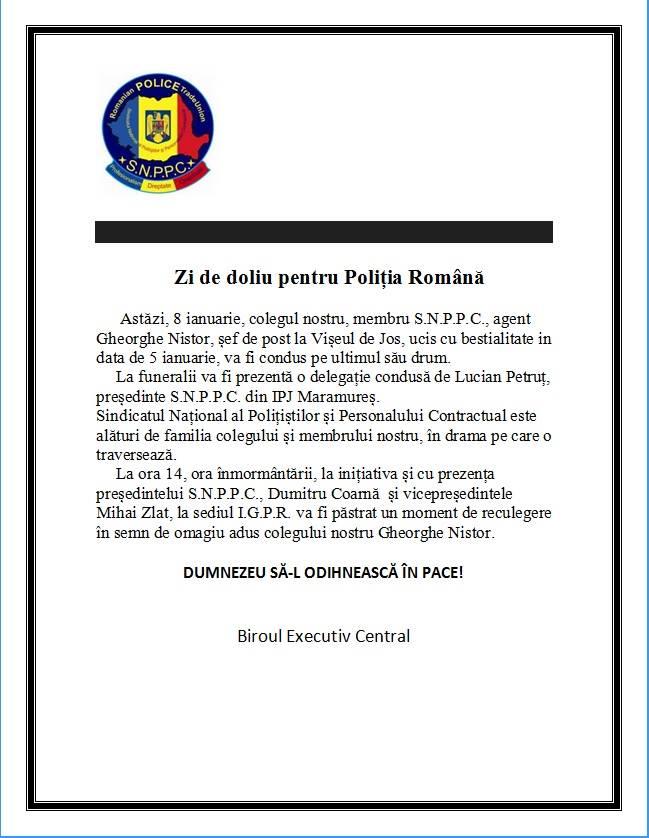 Șeful de post din Vișeu de Jos, ucis. Moment de reculegere în întreaga țară