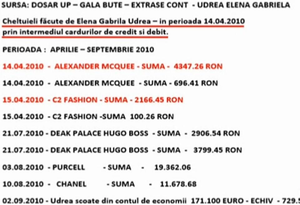 Elena Udrea cheltuia câte o mică avere zilnic. Extrase de cont