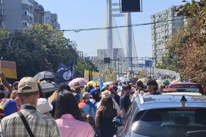 GALERIE FOTO/ Elevii, la școală. Profesorii, în stradă - VIDEO. Podul Basarab, blocat