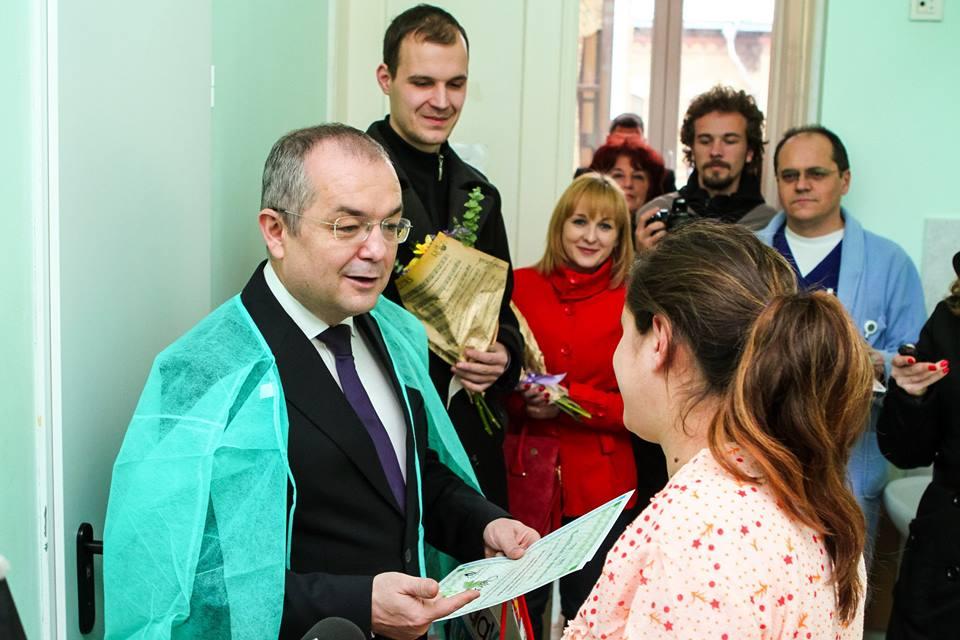 Emil Boc a premiat cinci nou-născuți cu diplome de onoare