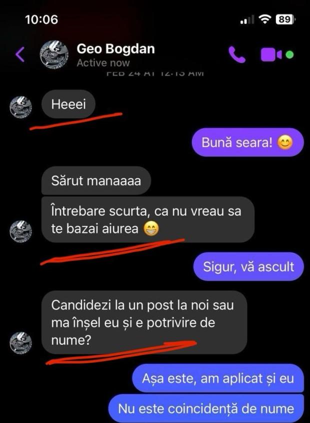 Una dintre conversații se încheie cu fraza: „Caut să fiu precaut, dar direct”.