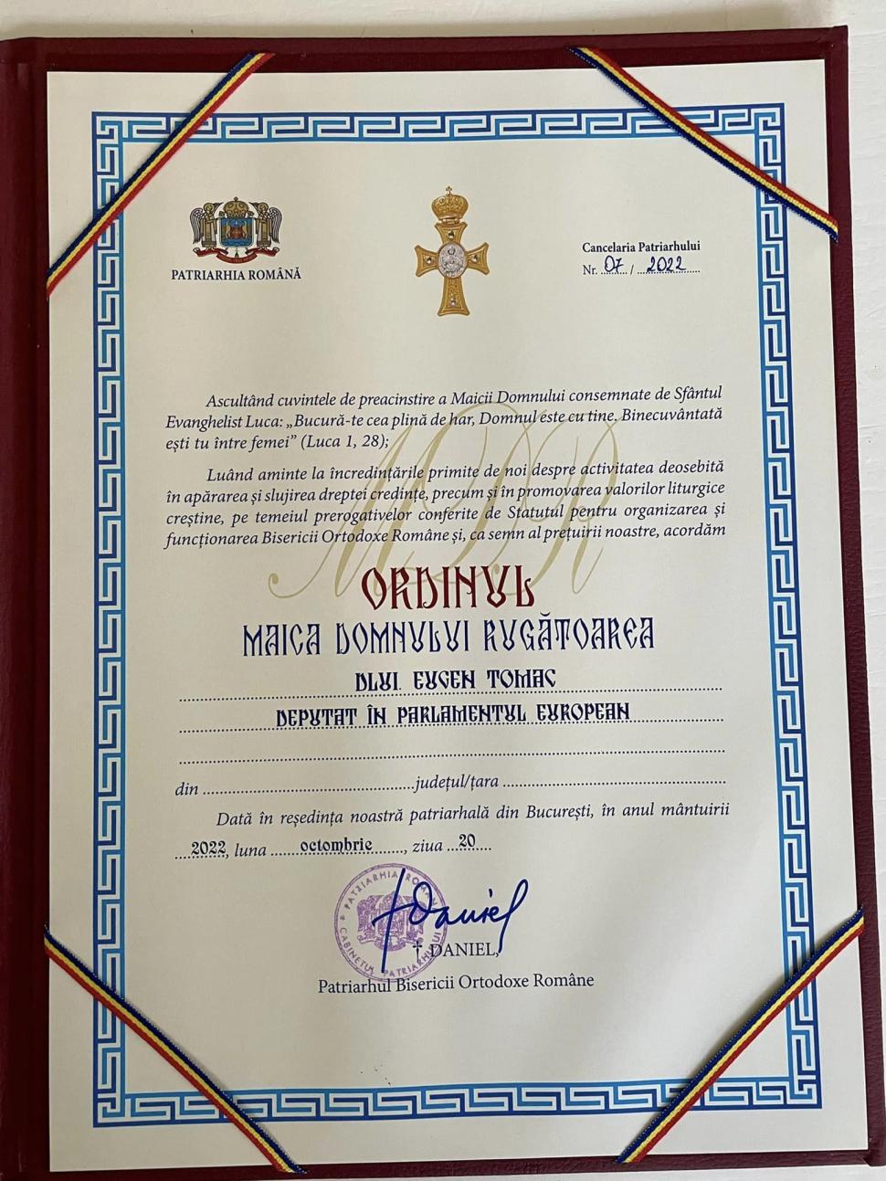 Eugen Tomac a primit distincția Ordinul Maica Domnului Rugătoarea: A fost divin!