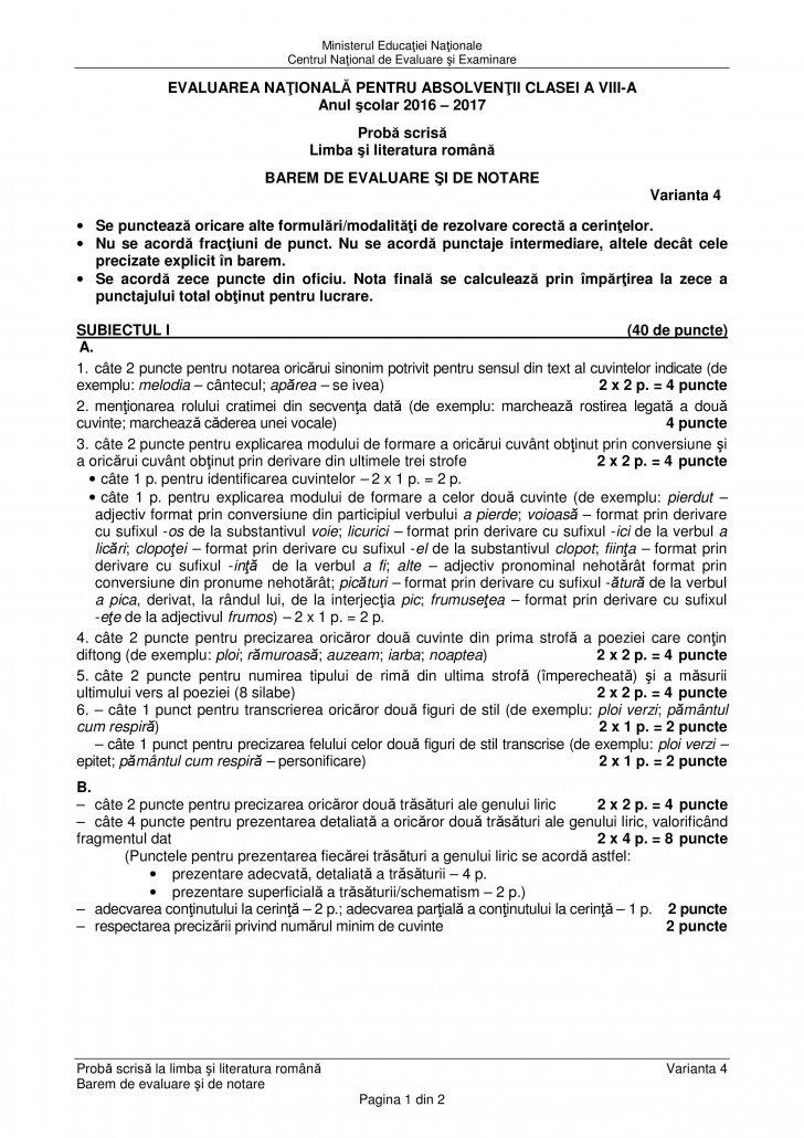 EVALUARE NAȚIONALĂ 2017 MATEMATICĂ SUBIECTE bareme