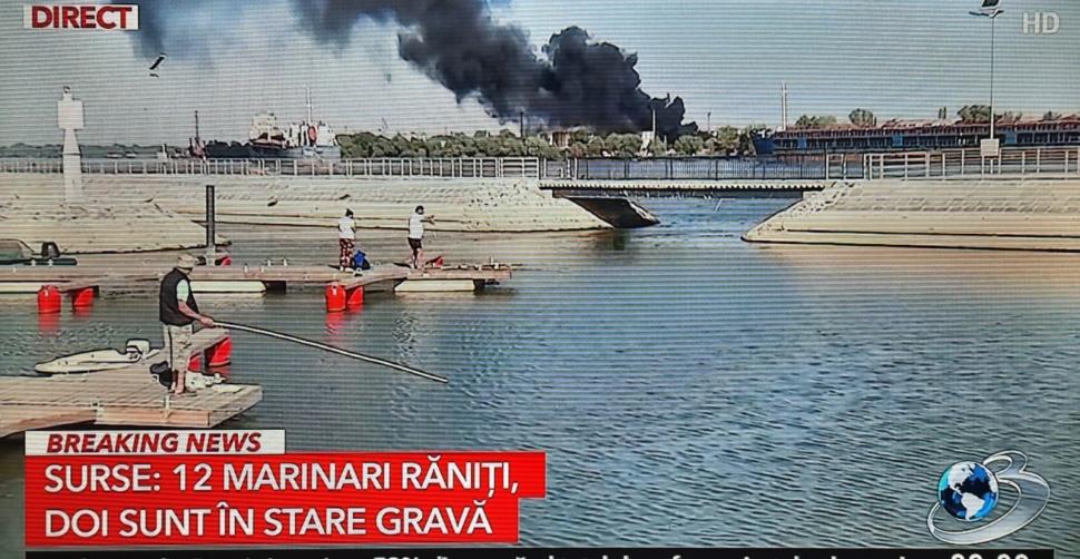 Explozie în apropiere de Sulina, la o navă de marfă. Update: Detalii despre marinarii răniți / video+galerie foto