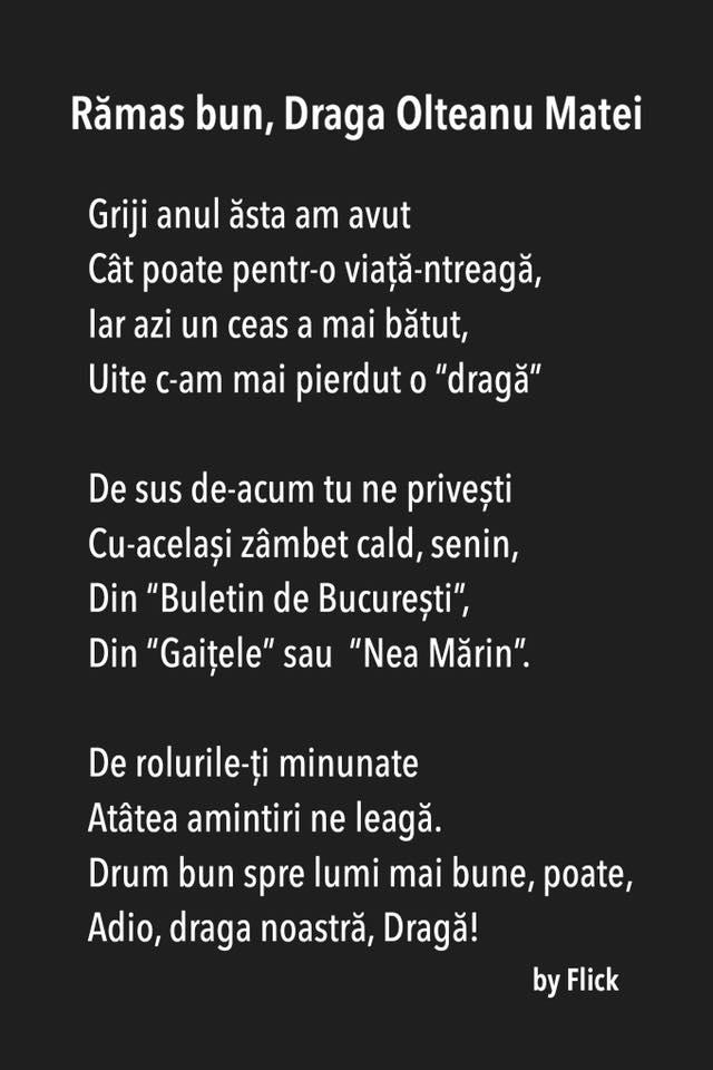 Flick, poezie emoționantă pentru Draga Olteanu Matei