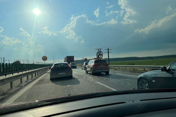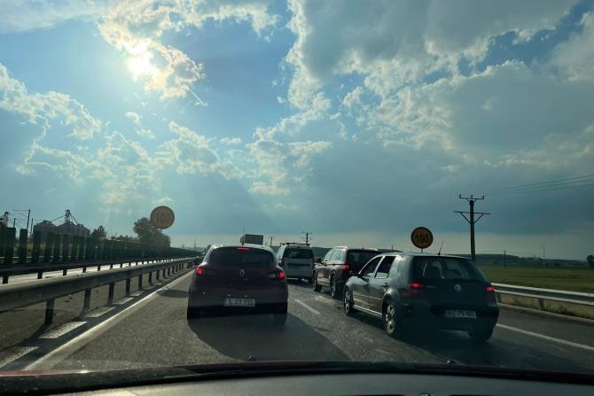 GALERIE FOTO: Cozi kilometrice pe A2, sensul către București. Lucrările dau peste cap traficul