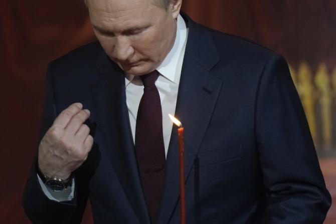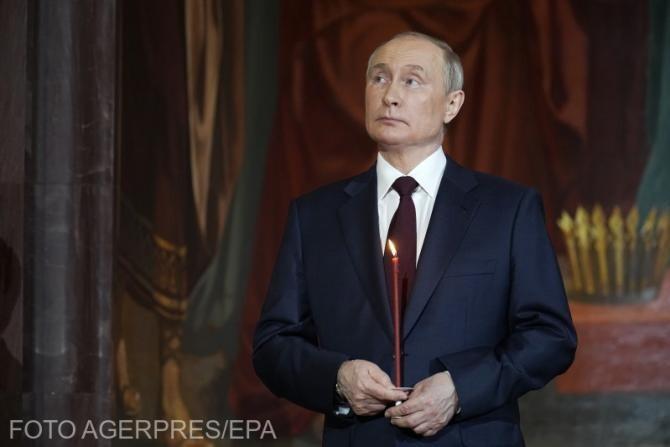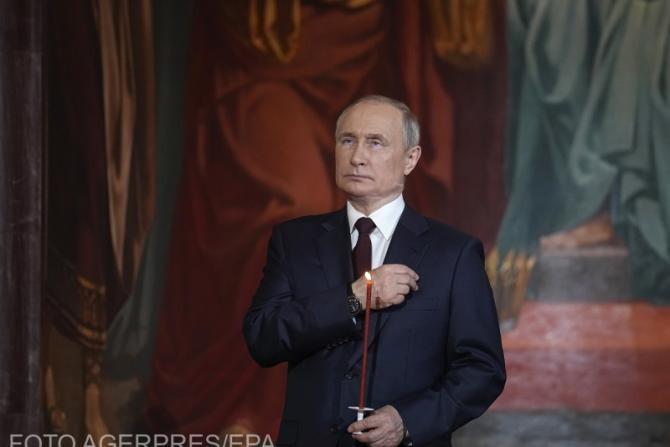 FOTO - Putin, prezent la slujba de Înviere, în timp ce în Ucraina rachetele ruseşti lovesc şi de Paşte