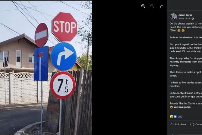 Fotografie tare cu regulile de circulaţie dintr-o intersecţie. Obligatoriu la dreapta pe interzis