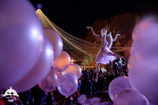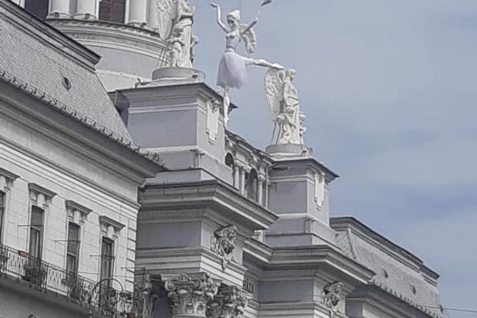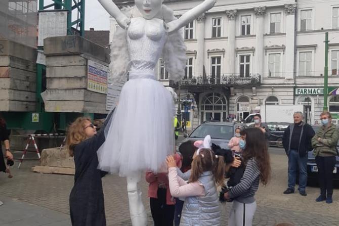 GALERIE FOTO. Păpuşă gigant, ridicată cu macaraua la Arad