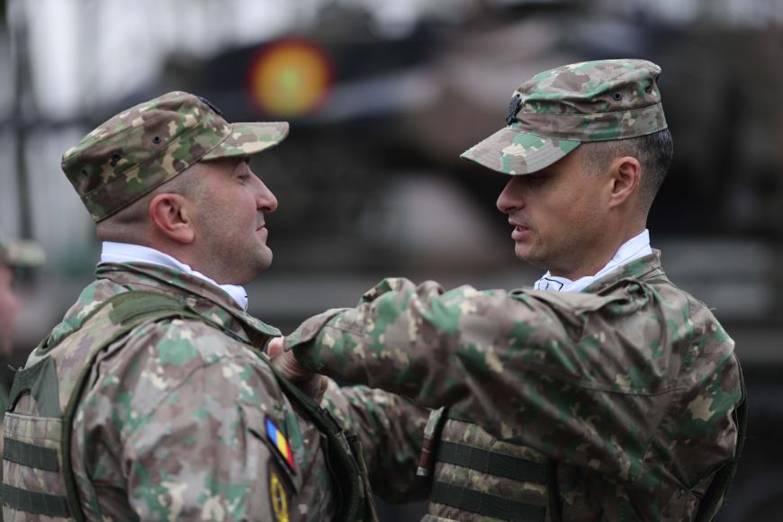 Soldați se pregătesc pentru începerea paradei militare de Ziua Națională a României, în București, 1 decembrie 2025. Sursa foto: Inquam Photos / George Călin