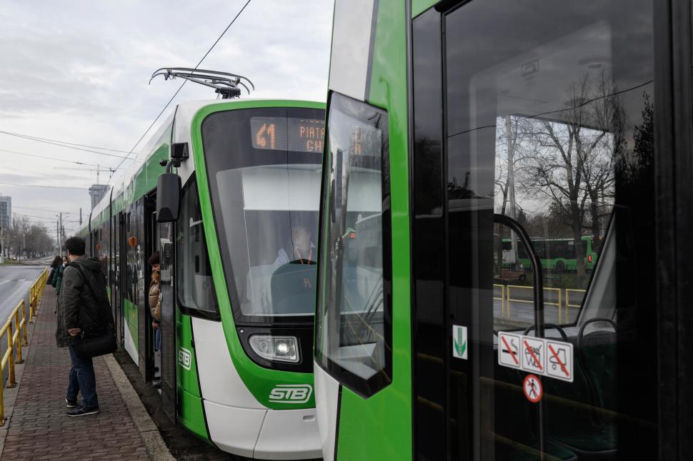 GALERIE FOTO: Primele tramvaie noi, pe traseu de astăzi. Nicușor Dan, apariție cu pălărie